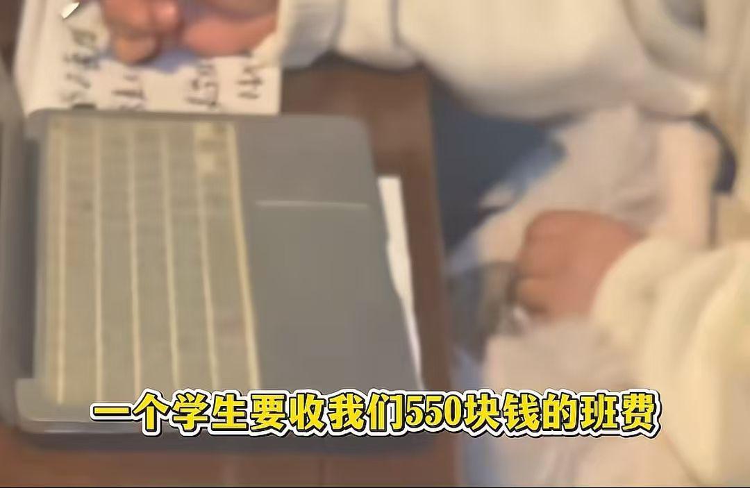看得出来,这是一所托管学校,孩子午饭在学校吃,仅仅一顿午饭这学期就1680元,这个价格看起来并不低,不过最触动人心的是那550元的班费。